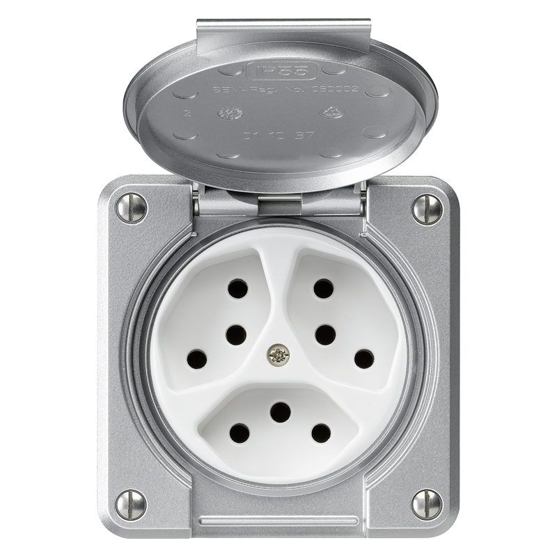 ROBUSTO Unterputz Nass-Steckdose 3x TYP 13, mit QuickConnect Steckklemmen, IP21, aluminium
