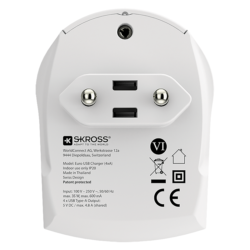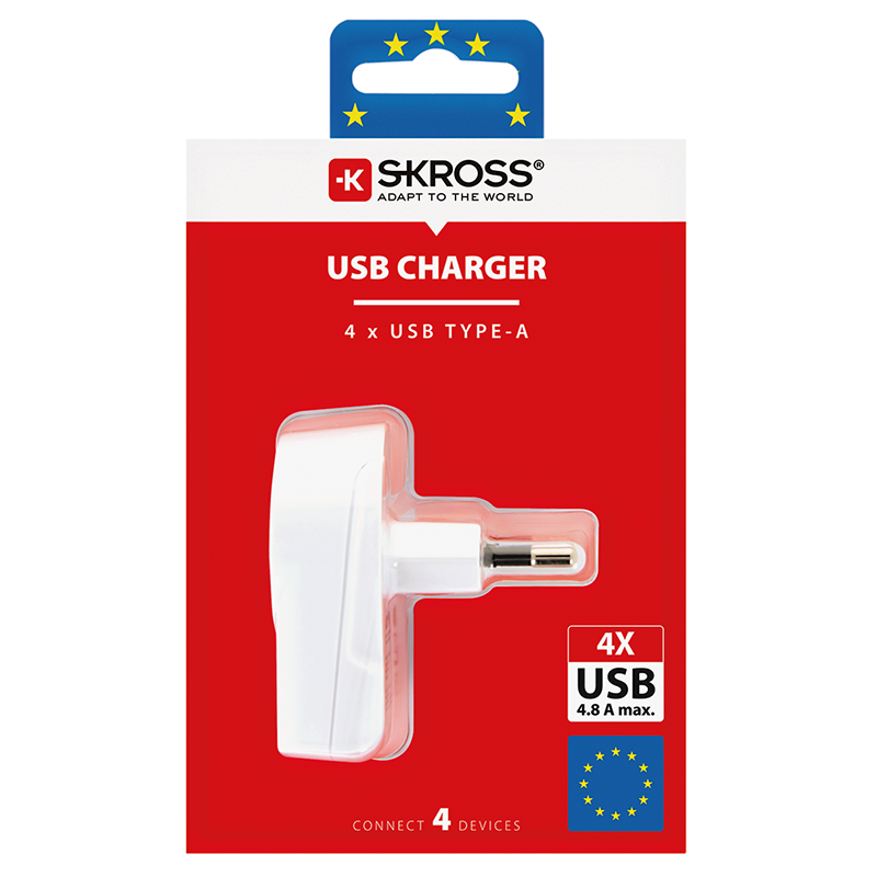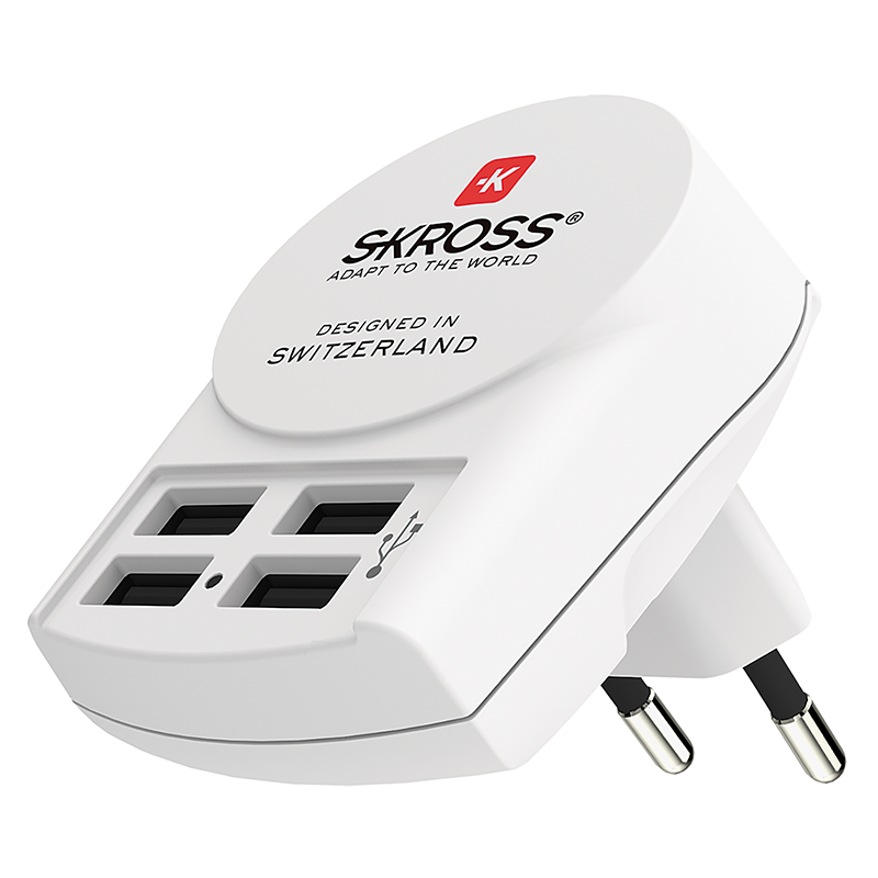 SKROSS Ladeadapter 4xUSB-A, Eingangsspannung: 110V-250V, Leistung: max. 24W, Last: max. 4.8A, weiss