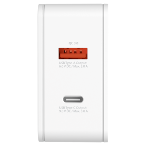 SKROSS Ladeadapter 48W PD 1xUSB-A + 1xUSB-C, Eingangsspannung: 100V-240V, Leistung: max. 48W, Last: USB-A max. 3.0A / USB-C max. 3.0A, weiss