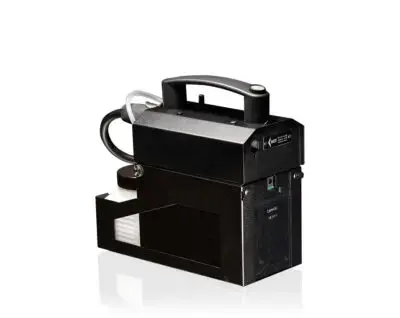 Die Smoke Factory Scotty II ist eine kleine handliche Nebelmaschine, ausgestattet mit einem 12 V Blei-Gel Akku für 400 Watt Nebelleistung.