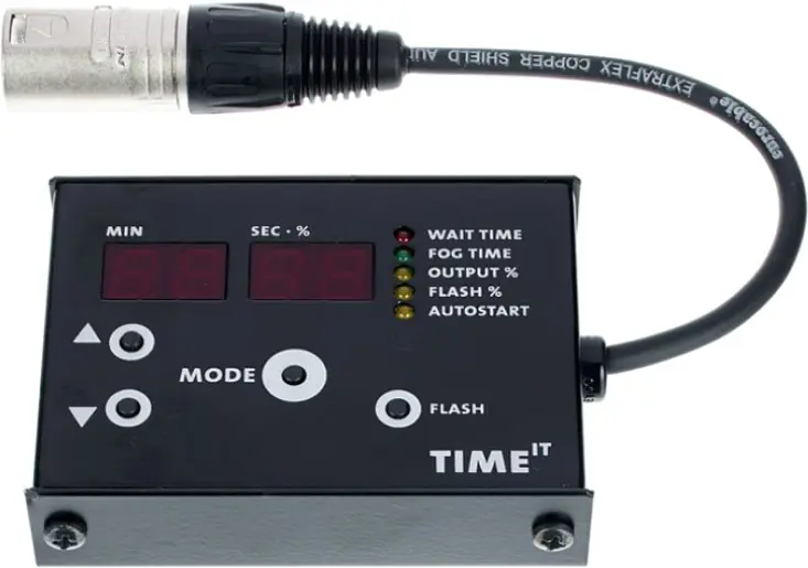 Externer Timer für alle Smoke Factory Geräte mit 3 Pol. Analog Input. Timer zum einstellen von Nebeloutput, Nebelzeit und Nebelpause. Automatischer Start des Timer Zyklus nachdem das Gerät vom Netz genommen wurde.