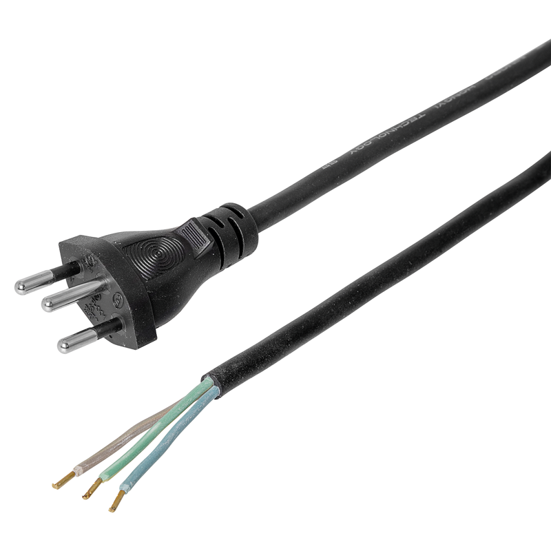 Anschlusskabel GdV H05RN-F 3G1mm2, Kabellänge 3m, 1. Seite Stecker T12, 2. Seite 30mm abgemantelt und 6mm abisoliert mit Aderendhülsen, schwarz