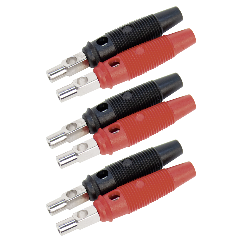 Bananenstecker je 3 Stk. schwarz und rot 4mm, Befestigungsart Kabel Klemmschraube max. Ø 3mm