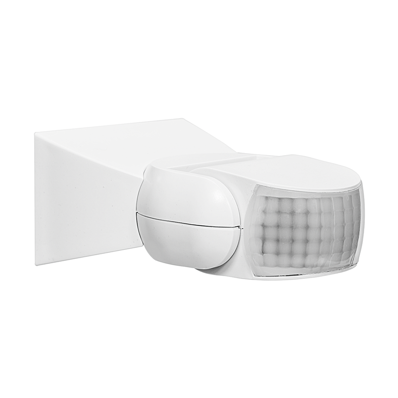 Bewegungsmelder IR 180°, Erfassungswinkel 180°, Reichweite max. 12m, Nachlaufzeit 10 sek. bis 15 min., Dämmerungsregler 3-2000lx, Schaltleistung max. 1200W (LED max. 300W), Installationshöhe max. 2.5m, IP65, weiss