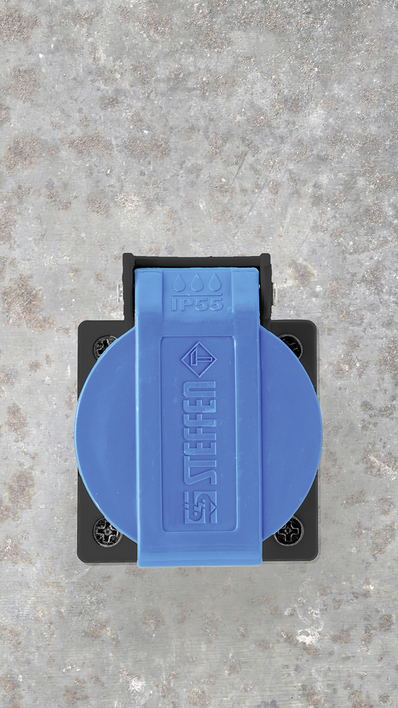 STEFFEN Einbausteckdose 1xT13 (10A/250V) IP55 anthrazit Deckel hellblau