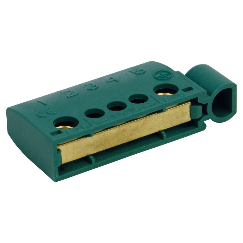 Erdklemme 3x6mm2+2x16mm2, isoliert, nummeriert, Farbe grün