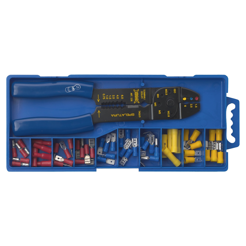Flach/Rundsteckverbinder Set 1.5 – 2.5 – 6mm², farbcodiert + Crimpzange 520