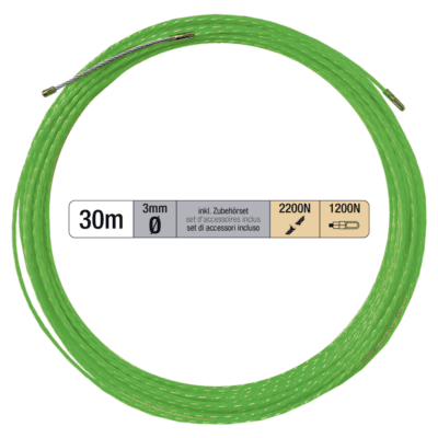 STEFFEN Kabeleinzugsband PROFESSIONAL 30m Ø 3mm mit Suchfeder + Zubehörset gn