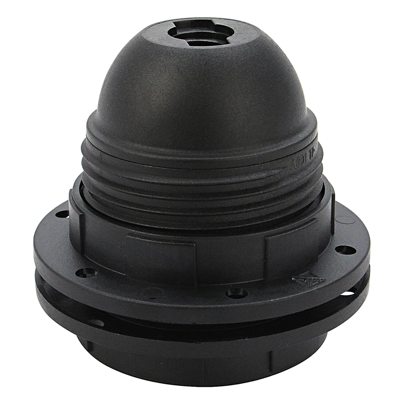 KST Fassung E27 schwarz mit Aussengewinde, Isolierkappe und 2 Pressringen