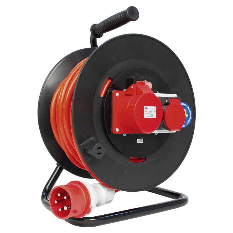 STEFFEN Kunststoff Kabelrolle 1xCEE16/5 + 1xT25 Bauflex 5×1.5mm2 33m IP44/IP55 sw