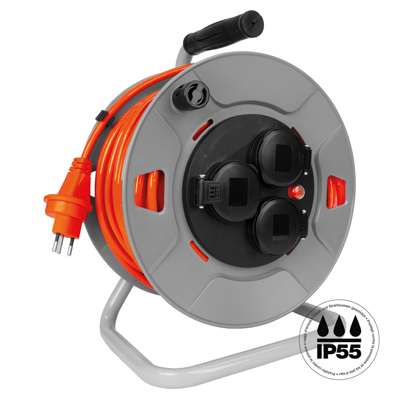 STEFFEN Kunststoff Kabelrolle 3xT13 IP55 SteffenFLEX PUR 3x1mm² 40m gr/sw