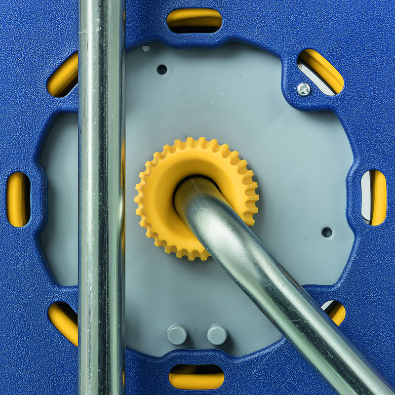 Kunststoff Kabelrolle LOOP 4xT13, Kabel Td H05VV-F 3G1mm2 gelb, Kabellänge 15m, Stecker T12, EIN-AUS Schalter beleuchtet, Thermoschutzschalter, patentierte Konusbremse, Kabelführung, blau/grau