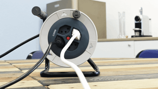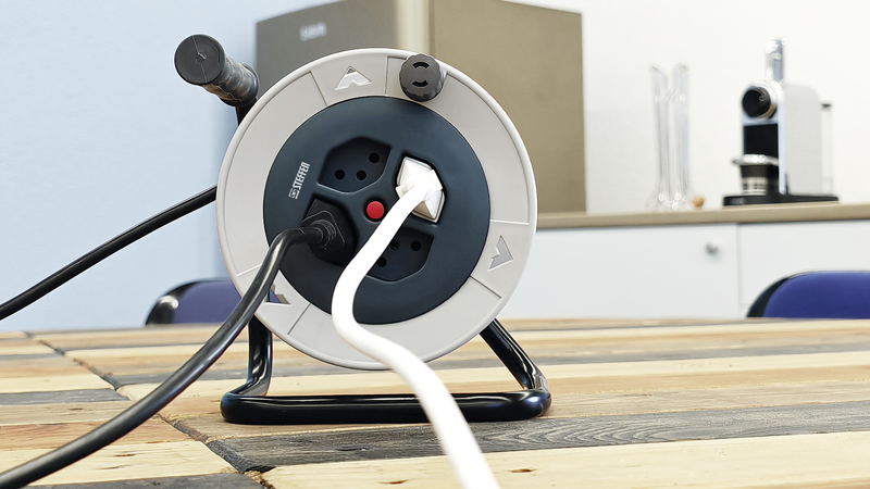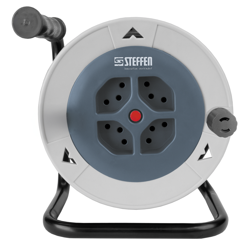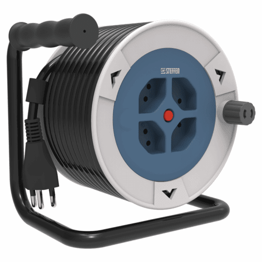 STEFFEN Kunststoff Kabelrolle mit Griff 4xT13 Td 3x1mm² 15m grau/blau
