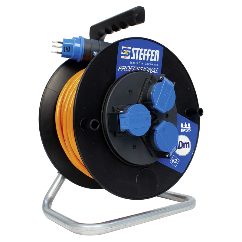 STEFFEN Kunststoff Kabelrolle PROFESSIONAL 3xT13 PUR 3×1.5mm2 30m IP55 sw