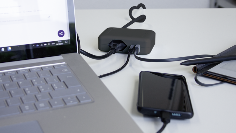 Ladestation IQ 1xT13 + 1xUSB-A 36W + 1xUSB-C PD 45W (USB A+C max. 24W), Kabel Td H05VV-F 3G1mm2, Kabellänge 1.5m, Stecker T12, anthrazit. Power Delivery, oder kurz PD, ist eine Technologie für schnelles, intelligentes Aufladen. Der PD Standard ermöglicht ein bis zu 3x schnelleres Laden als ein herkömmliches USB-Ladegerät.