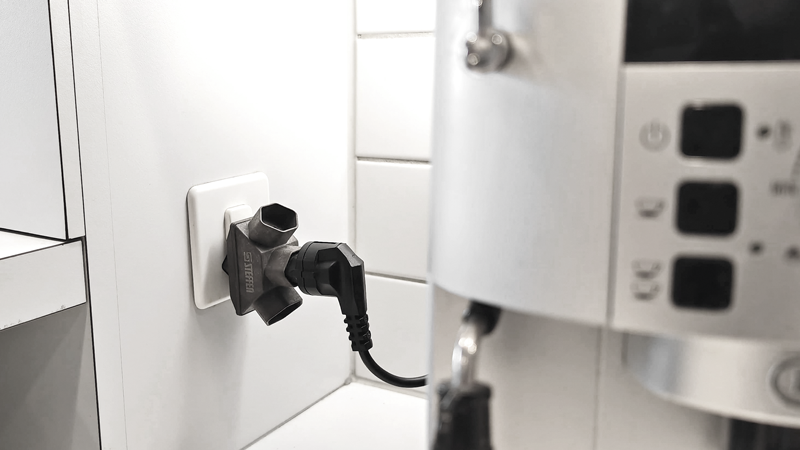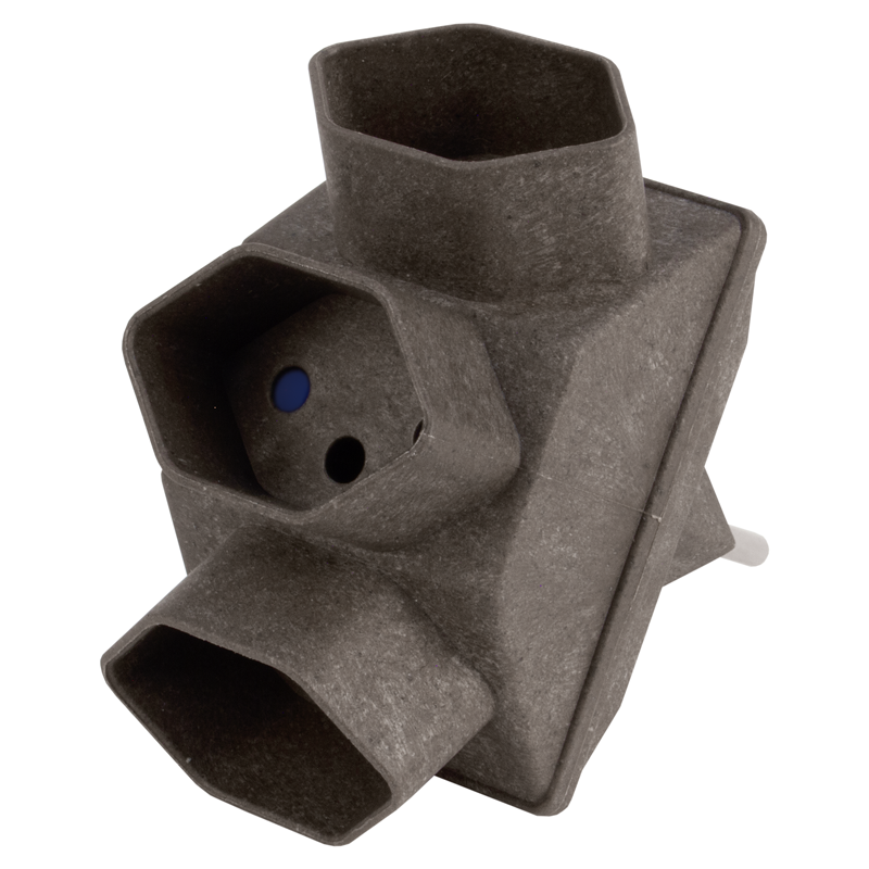 Mehrfachadapter COFFEE sternförmig 3xT13 mit erhöhtem Berührungsschutz, Material: 20% Kaffeesatz, 80% recyceltes Polypropylen, braun