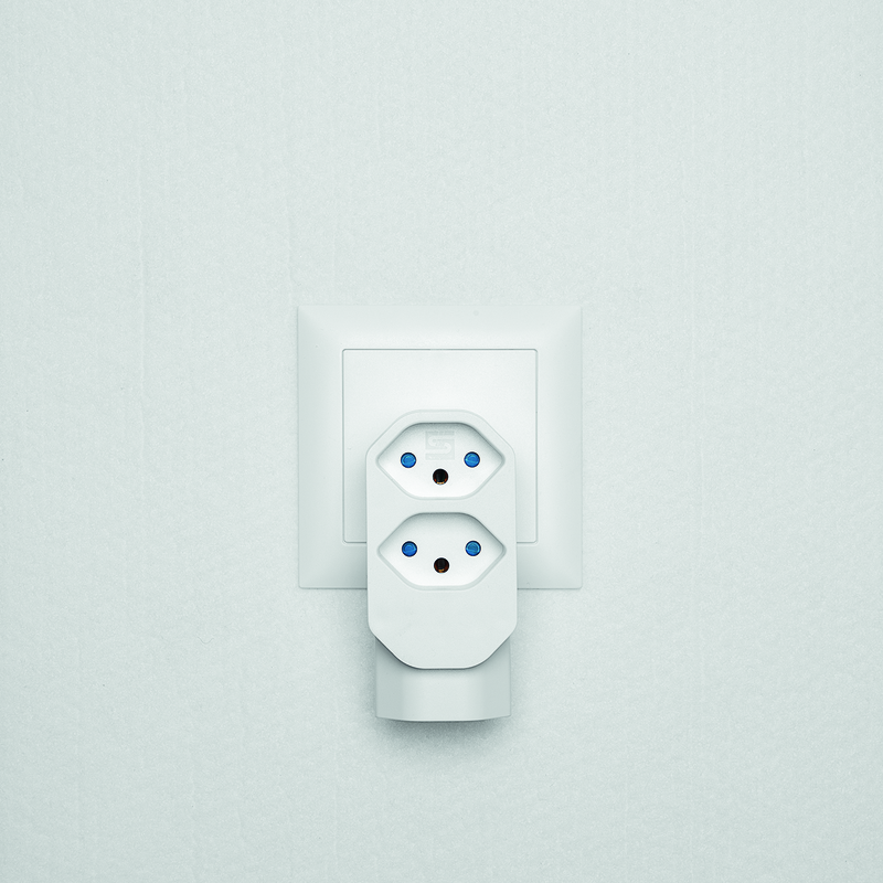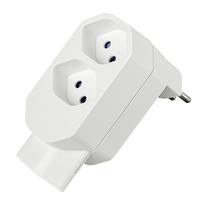 Mehrfachadapter MANTA 2+1xT13 mit erhöhtem Berührungsschutz, Stecker T12 drehbar bis zu 320°, weiss