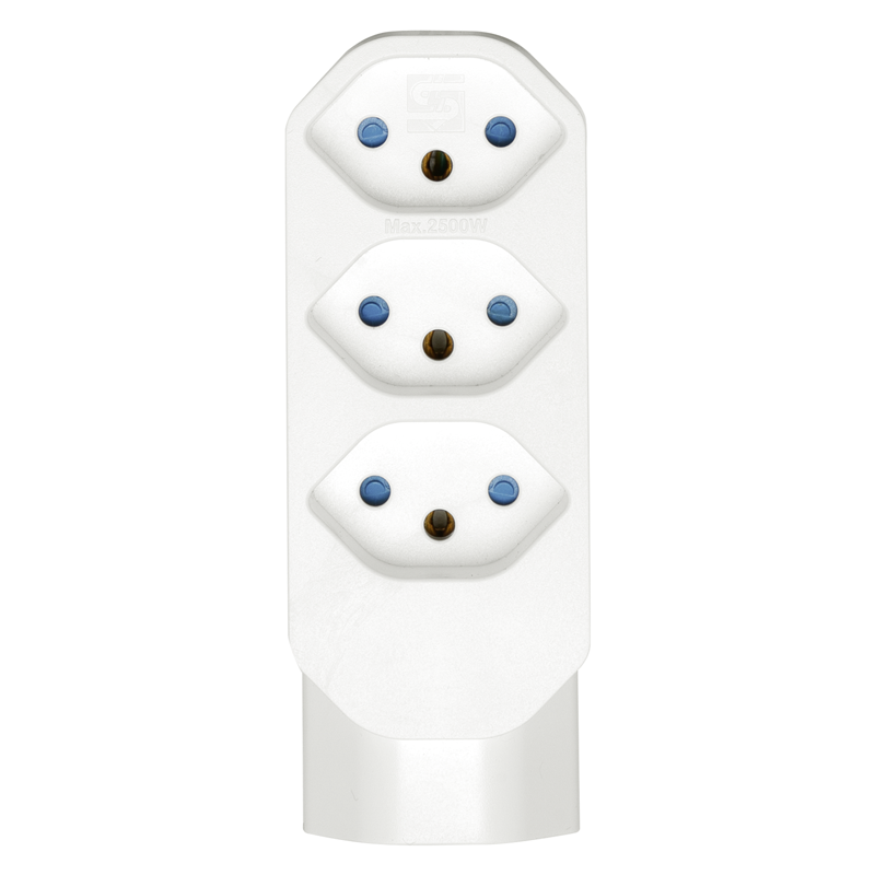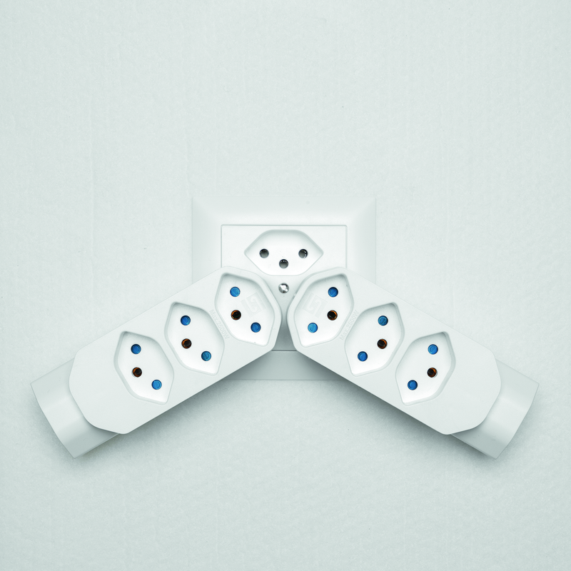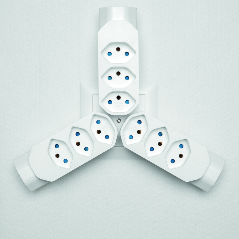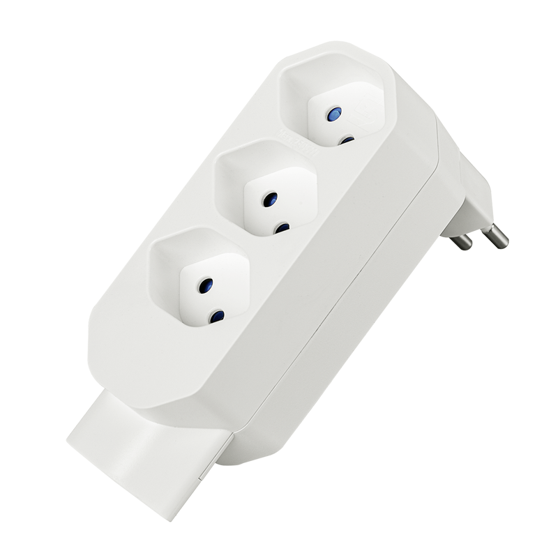 Mehrfachadapter MANTA 3+1xT13 mit erhöhtem Berührungsschutz, Stecker T12 drehbar bis zu 320°, weiss