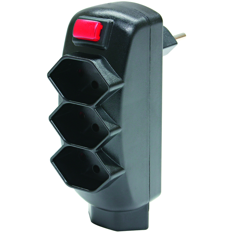 Mehrfachadapter SWING 3+1xT13 mit erhöhtem Berührungsschutz, EIN-AUS Schalter, Stecker T12 drehbar bis zu 300°, schwarz