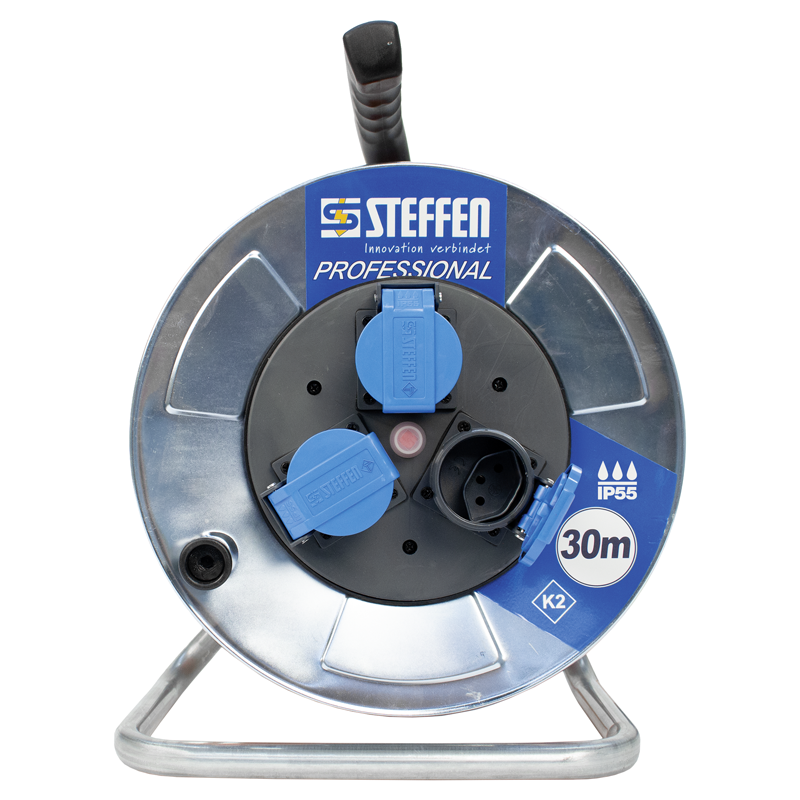 STEFFEN Metall Kabelrolle PROFESSIONAL 3xT13 PUR 3×1.5mm2 30m IP55 si/sw