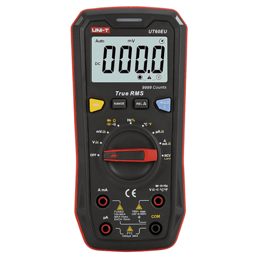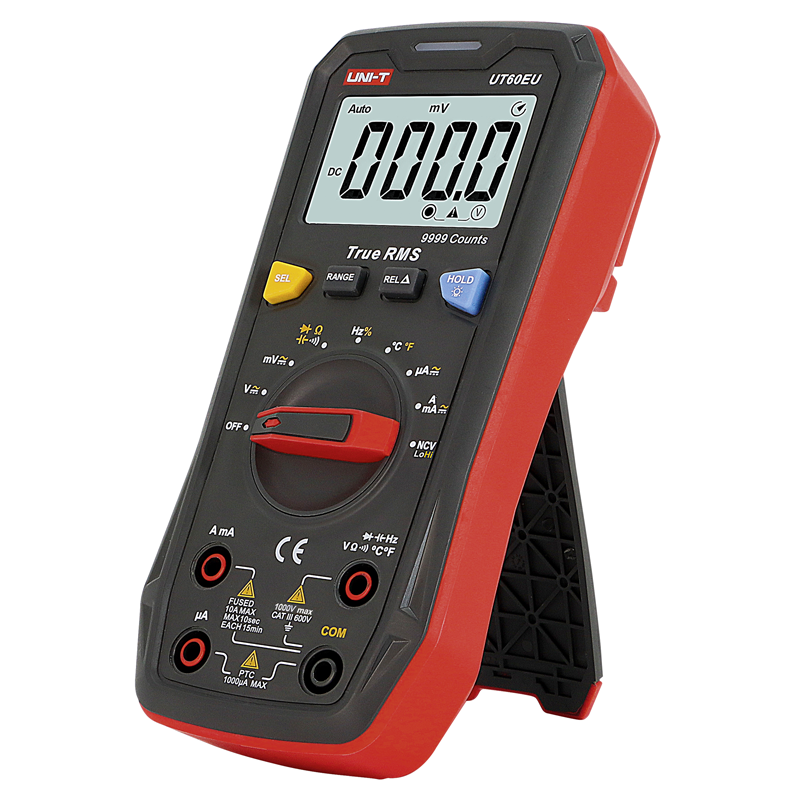 Multimeter max.1000V / CAT III 600V, True RMS, AC/DC Spannungsmessung: 1000V, Grosse Kapazitätsmessung: 9.999mF, grosse Widerstandsmessung: 99.99MOhm, Dioden-/Durchgangsprüfung, Datenhaltung/Hintergrundbeleuchtung, Analogbalken NCV, rot/schwarz
