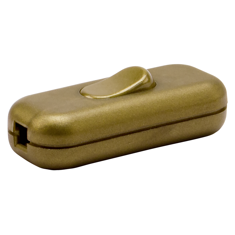 Schnurschalter EIN-AUS 1-polig (2A/250V) für Rundkabel, mit Schraubklemmen, gold