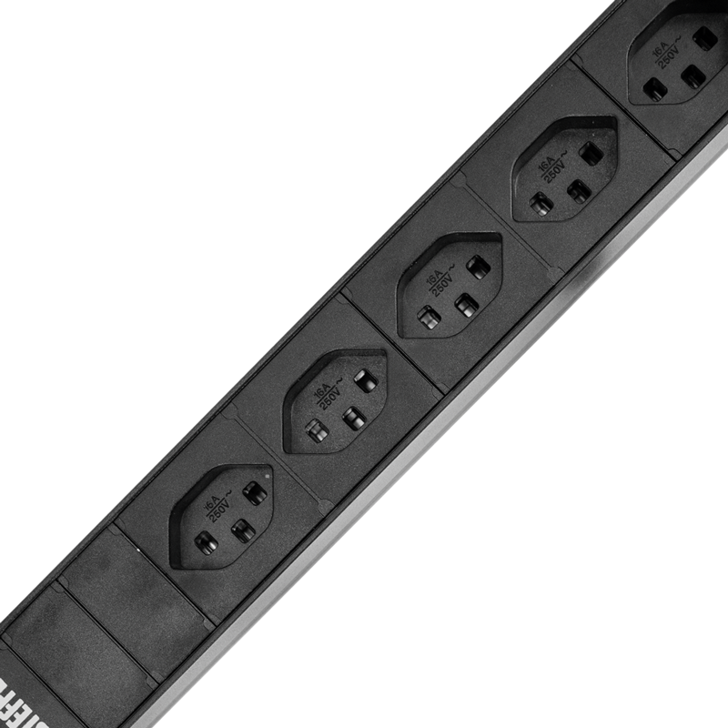 Steckdosenleiste ALU MODULAR PDU BLACK 1HE 8xT23 quer, Kabel Td H05VV-F 3G1.5mm2 schwarz, Kabellänge 3m, Stecker T23 schwarz, inkl. modulare Befestigungswinkel für eine horizontale oder vertikale 19Zoll-Rack Montage (separat im Polybeutel verpackt), schwarz