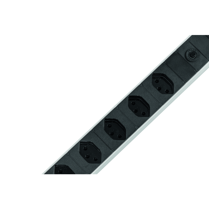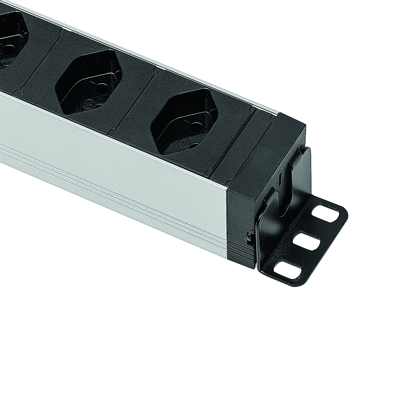 Steckdosenleiste ALU MODULAR PDU SILVER 1HE 8xT13 längs, Kabel Td H05VV-F 3×1.5mm2 schwarz, Kabellänge 3m, Stecker T12 schwarz, Reset-Knopf (rückstellbarer Überstromschutz), inkl. modulare Befestigungswinkel für eine horizontale oder vertikale 19Zoll-Rack Montage (separat im Polybeutel verpackt), silber/schwarz