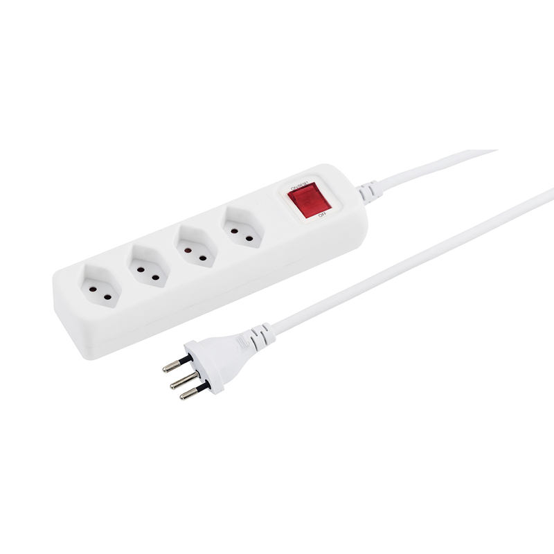 Steckdosenleiste POWER EASY 4xT13 längs mit erhöhtem Berührungsschutz, Kabel Td H05VV-F 3G1mm2, Kabellänge 1.5m, Stecker T12, Reset-Schalter (EIN-AUS Schalter mit rückstellbarem Überstromschutz), weiss