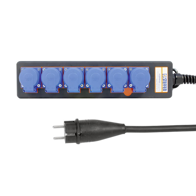 STEFFEN Steckdosenleiste PROFESSIONAL 6xSchuko GdV 3×2.5mm2 3m IP54 sw/bl