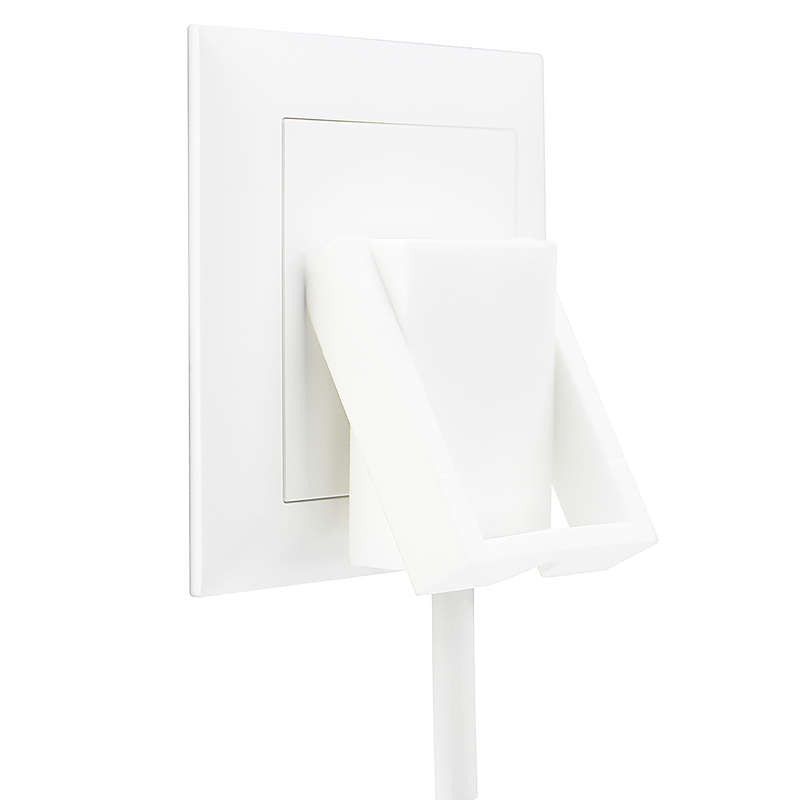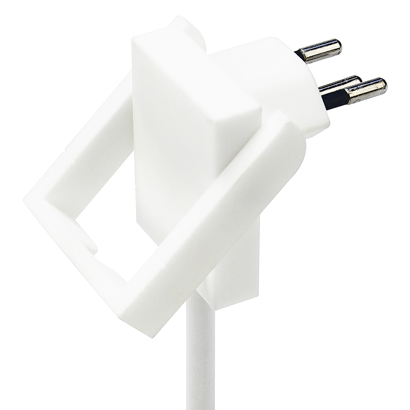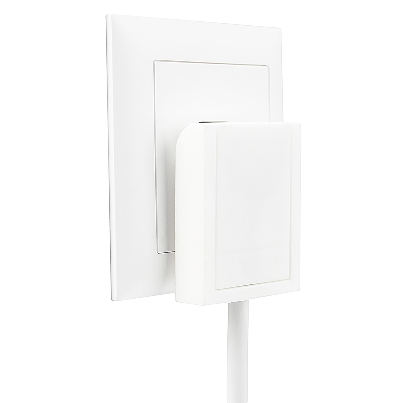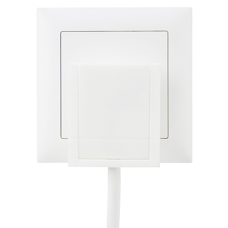 Steckdosenleiste VARIABL 4xT13 längs mit erhöhtem Berührungsschutz, Kabel Td H05VV-F 3G1mm2, Kabellänge 3m, Flach-Winkelstecker T12 SKATE, Reset-Schalter (EIN-AUS Schalter mit rückstellbarem Überstromschutz), Aufhängeösen, Haftmagnete inkl. Mangetklebehalterungen, Aufwickelvorrichtung, weiss