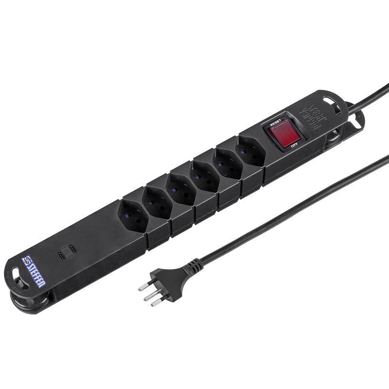 STEFFEN Steckdosenleiste VARIABL 6xT13 + 2xUSB-C PD 18W 3m sw