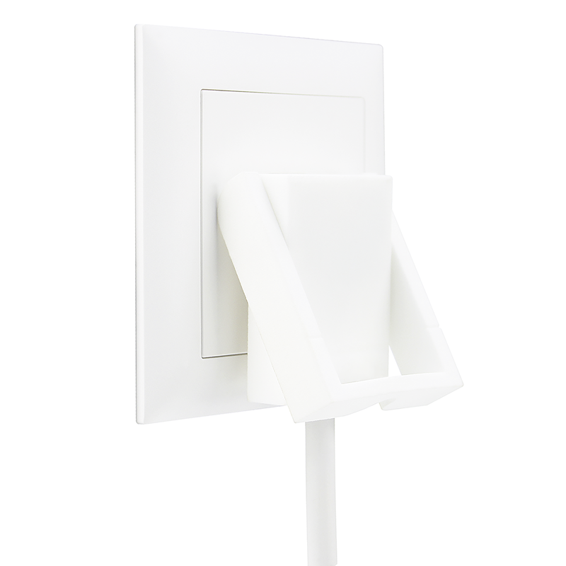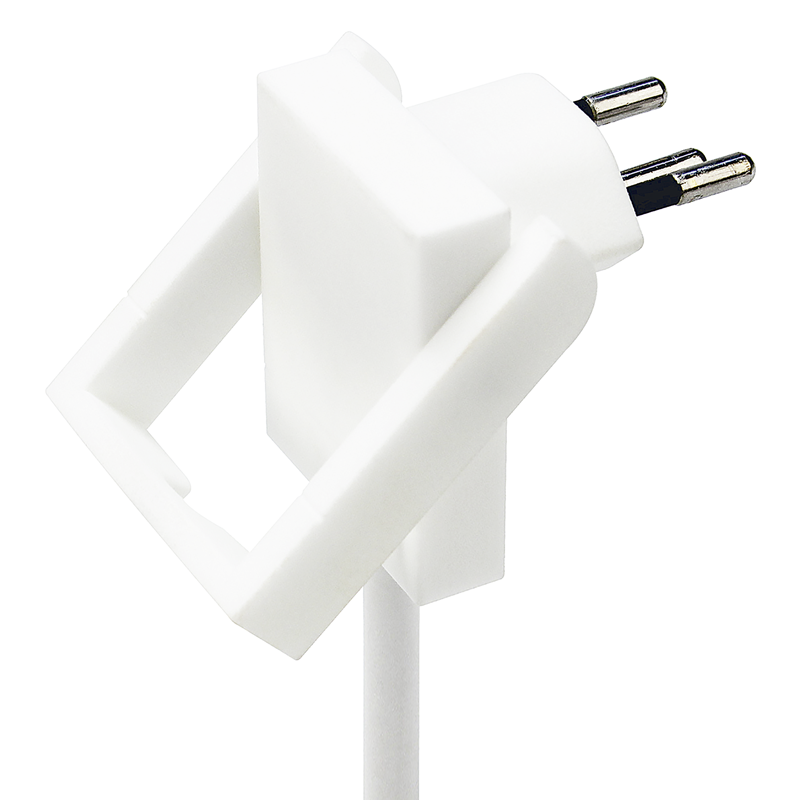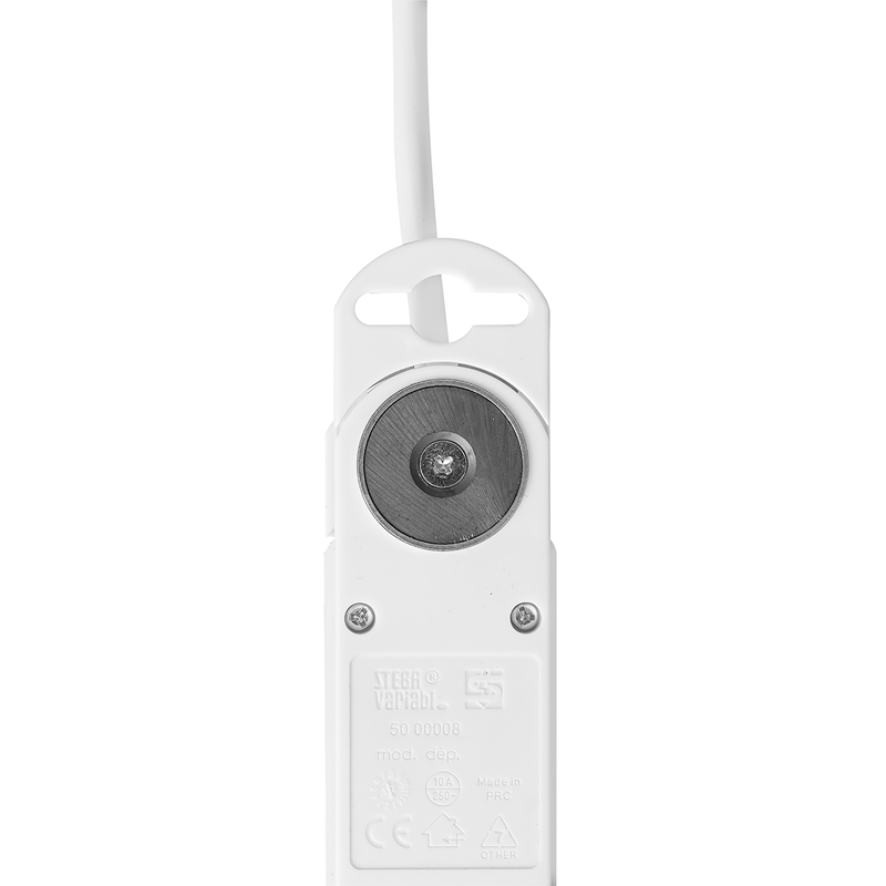 Steckdosenleiste VARIABL 6xT13 längs mit erhöhtem Berührungsschutz, Kabel Td H05VV-F 3G1mm2, Kabellänge 3m, Flach-Winkelstecker T12 SKATE, Reset-Schalter (EIN-AUS Schalter mit rückstellbarem Überstromschutz), Aufhängeösen, Haftmagnete inkl. Mangetklebehalterungen, Aufwickelvorrichtung, weiss