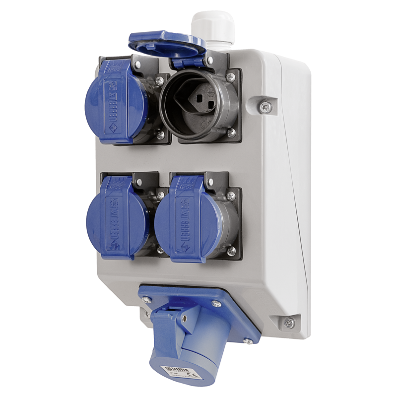 STEFFEN Steckdosenverteiler 4xT23 (IP55), 1xCEE16/3 (IP44)