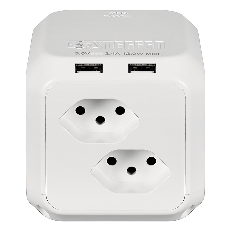 STEFFEN Steckdosenwürfel CUBE 8xT13 + 2xUSB-A 12W 1.5m mit integr. Feinsicherung ws
