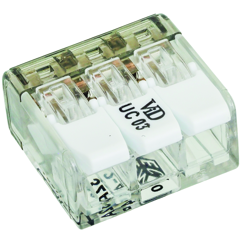 STEFFEN Steckklemme 3x 0.2-4mm2 mit Betätigungshebel tr/ws VPE 100 Stk.