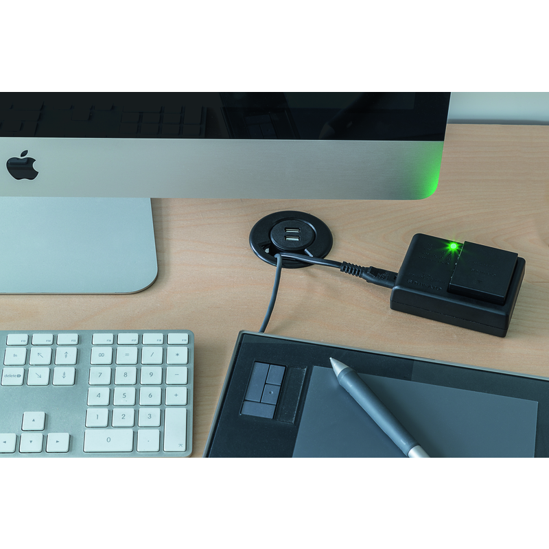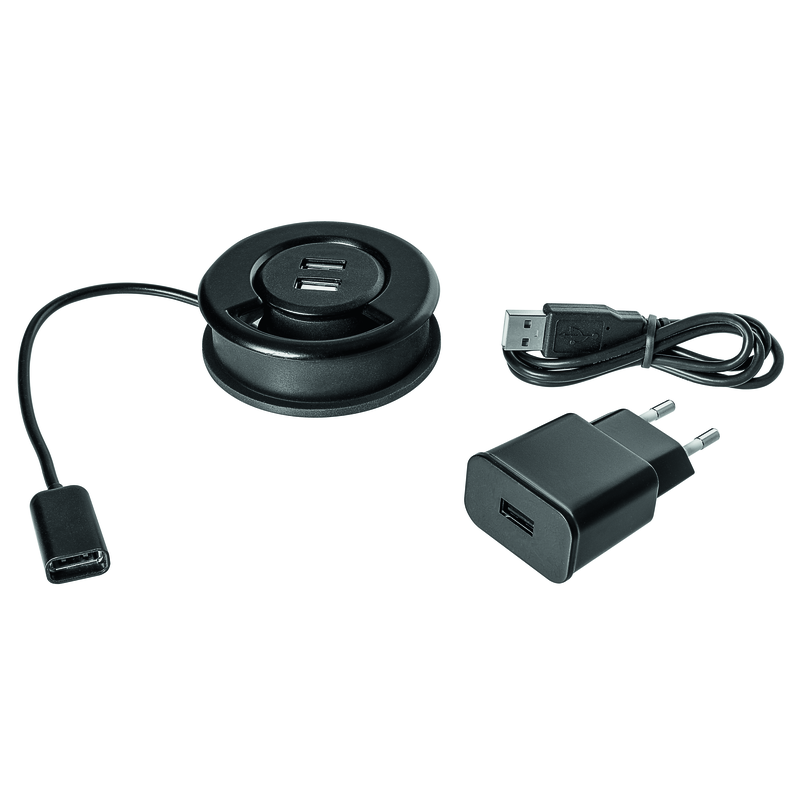 STEFFEN USB-A Tisch-Kabeldurchführung mit 2xUSB-A 5V/2A + Anschlusskab. 1.5m sw