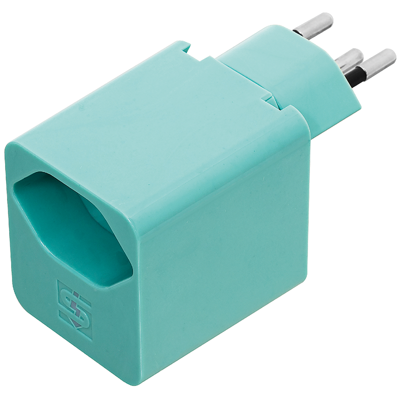 USB-C Power Delivery Ladeadapter 18W 5V/3.0A 9V/2A 12V/1.5A + 1xT13 mit erhöhtem Berührungsschutz, Stecker T12 drehbar bis zu 325°, türkis.