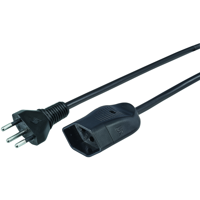 Verlängerungskabel Gd H05RR-F 3G1.5mm2, Kabellänge 3m, 1. Seite Stecker T12, 2. Seite Kupplung T13, schwarz
