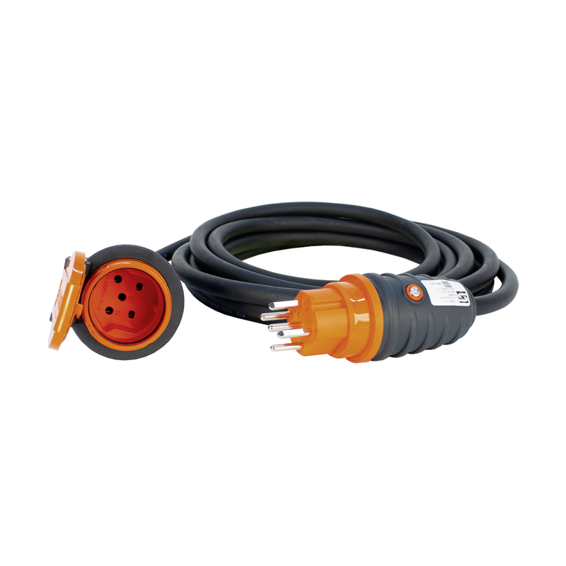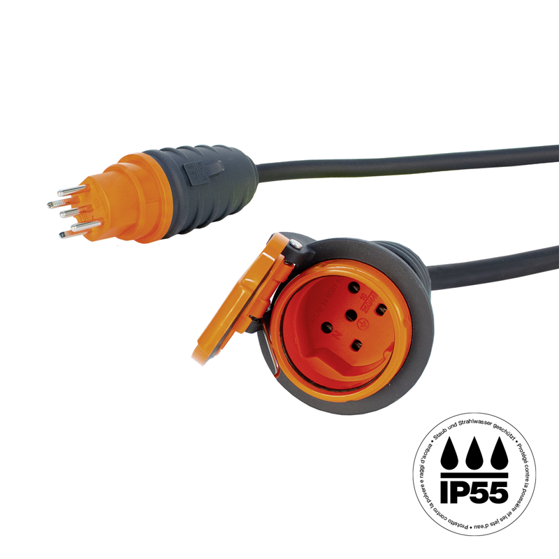 Verlängerungskabel GdV H07RN-F 5G1.5mm2 schwarz, Kabellänge 5m, 1. Seite Stecker T15 IP55 orange, 2. Seite Kupplung T15 IP55 orange