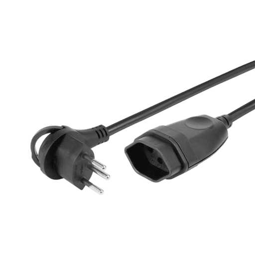 Verlängerungskabel schwarz Td H05VV-F 3G1mm², Kabellänge 0.25m, 1. Seite Flach-Winkelstecker T12, 2. Seite Kupplung T13, VPE 2 Stk.