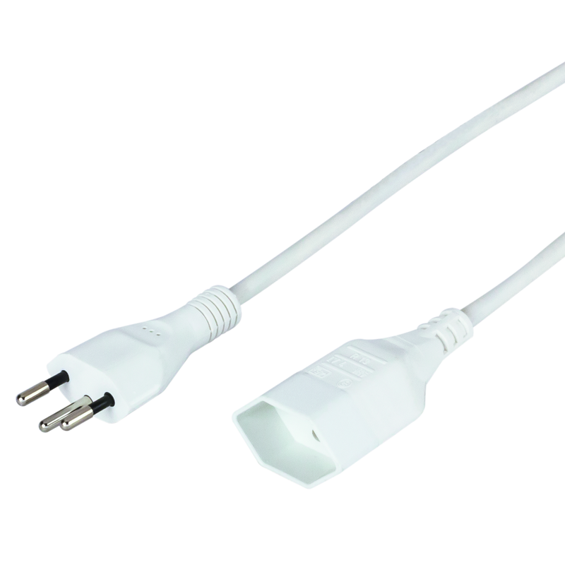 Verlängerungskabel Td H05Z1Z1-F 3G1mm2, Kabellänge 3m, 1. Seite Stecker T12, 2. Seite Kupplung T13, halogenfrei, weiss