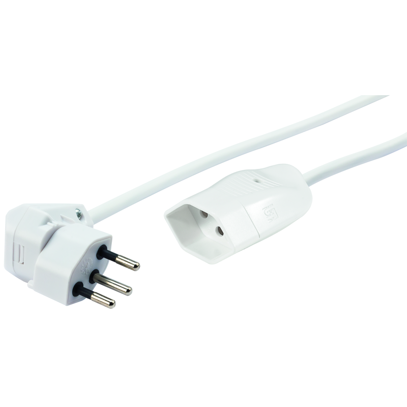 Verlängerungskabel Td H05VV-F 3G1mm2, Kabellänge 5m, 1. Seite Dreh-Winkelstecker T12 PEACHICK MOVE ON (drehbar bis zu 270°), 2. Seite Kupplung T13 mit erhöhtem Berührungsschutz, weiss