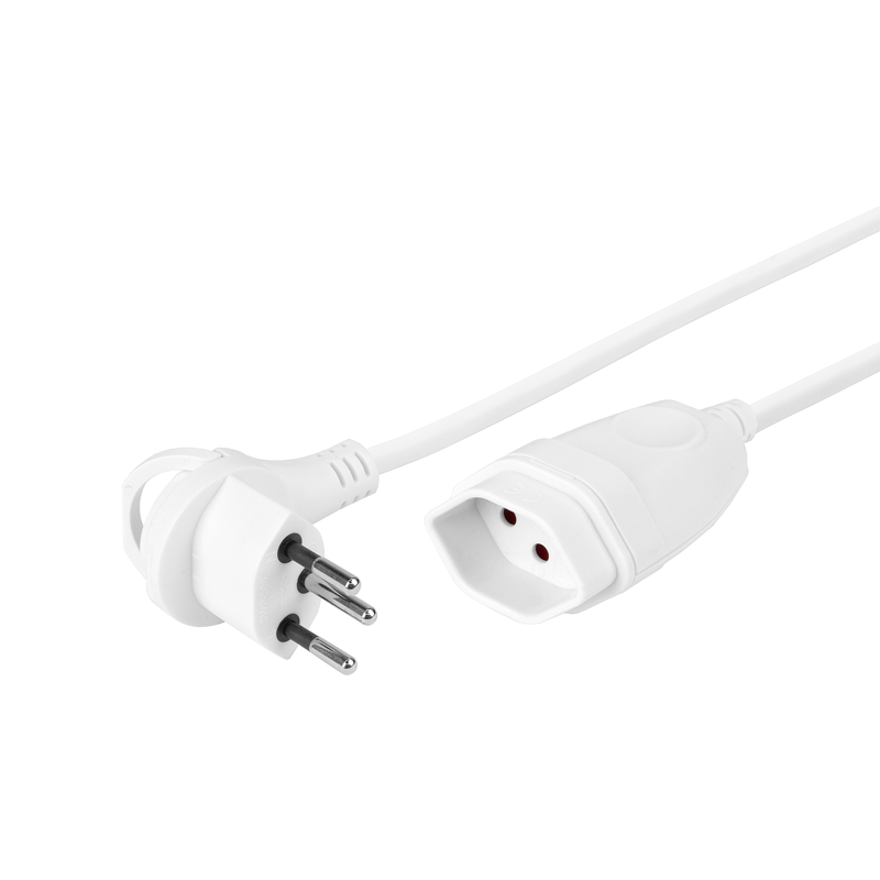 Verlängerungskabel weiss Td H05VV-F 3G1mm², Kabellänge 5m, 1. Seite Flach-Winkelstecker T12 SKATE, 2. Seite Kupplung T13
