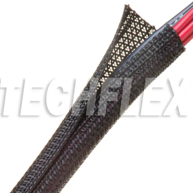 Durch den seitlichen Schlitz kann der Schlauch an jeder beliebigen Stelle geöffnet werden, um allen möglichen Anforderungen bei der Kabelbündelung gerecht zu werden; das halbstarre Geflecht umschliesst die Kabel fest, ohne dass zusätzliche Befestigungen nötig wären.