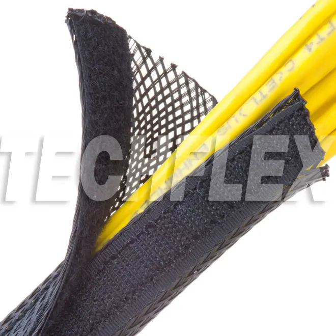 FlexoWrap ist ein flexibler Kabelschlauch mit Hochleistungsklettverschluss. Er eignet sich besonders für Anwendungen, bei denen die Bündelung nachträglich erfolgen muss. Dank des farbgleichen Klettverschlusses kann der Schlauch schnell geöffnet bzw. wieder geschlossen werden. Er bietet dadurch ausserdem einen schnellen und praktischen Zugriff für Kabel-Abzweigungen oder Reparaturarbeiten an jeder beliebigen Stelle – entlang der gesamten Kabellänge.