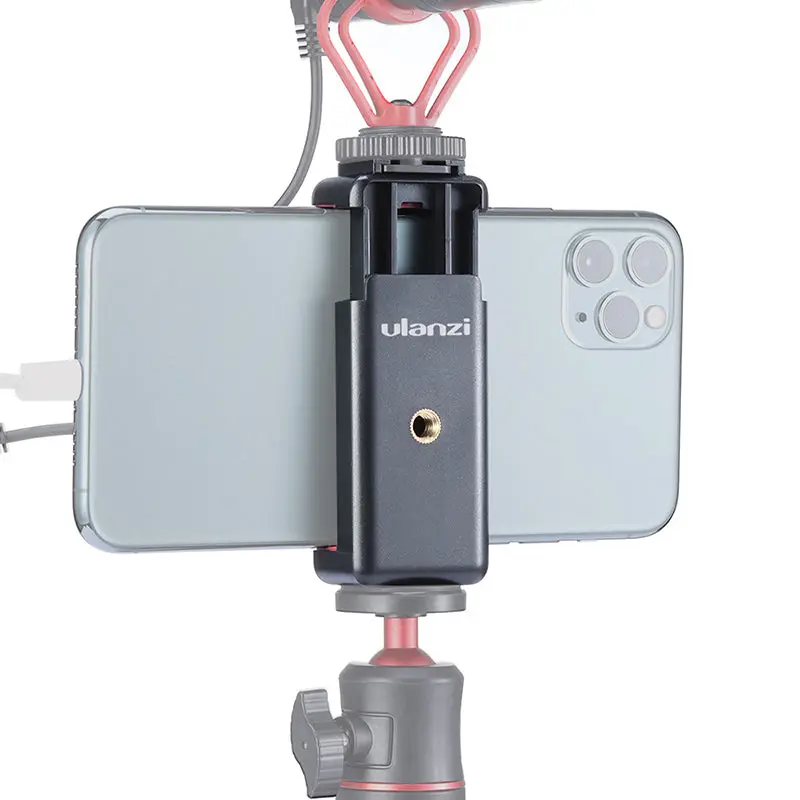 Verbessern Sie Ihre mobile Fotografie und Videografie mit dem Ulanzi ST-07 Cold Shoe Phone Mount Holder. Dieser Smartphone-Halter kann für verbesserte Stabilität über die oberen und hinteren 1/4″-20-Gewindeschraubenlöcher an einem Stativ befestigt werden. Für zusätzliche Vielseitigkeit bietet ein Cold Shoe auf der Oberseite des Halters Platz für verschiedene kompatible Zubehörteile. Die integrierten Gummigriffe des Halters sind so konzipiert, dass Ihr Telefon sicher gehalten wird, und die verstellbare Klemme ist für eine Reihe von Smartphone-Modellen geeignet.