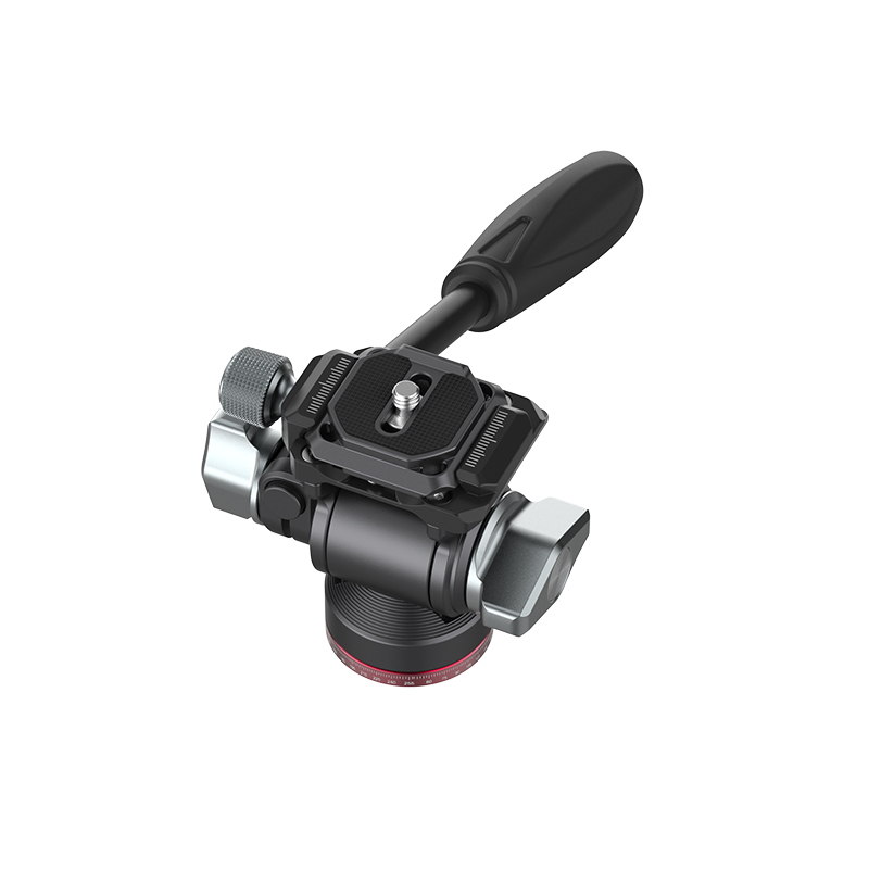 Dieser kompakte und robuste Mini-Fluidkopf kann eine Nutzlast von 10 kg bewältigen und lässt sich dank seines 1/4″-20 und 3/8″-16 Befestigungsgewindes an der Unterseite auf praktisch jedem Stativ montieren. Der Kopf verfügt ausserdem über einen abnehmbaren Griff, mit dem Sie den Griff und seine positive/negative Richtung einstellen können.
