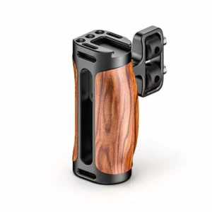 Montiere den UURig R075 Links/Rechts Universal-Holzgriff an deinem Cage, um einen sicheren, bequemen und attraktiven Griff zu erhalten. Mit den beiden Befestigungsschrauben lässt sich der Griff an jedem Cage befestigen, der 1/4″-20 Befestigungspunkte im Abstand von 18 mm unterstützt. Der Griff besteht aus Aluminium in Luftfahrtqualität und brasilianischem Palisanderholz für einen kühlen, bequemen Griff, und du kannst die Befestigungsschrauben in der Höhe verstellen, um die bequemste Position zu finden.