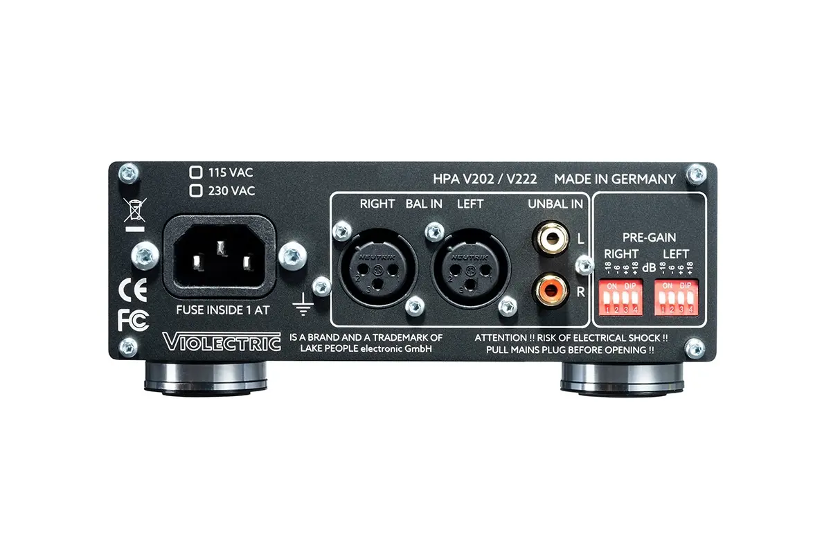 Verbinden Sie Ihren Kopfhörer mit dem HPA V202 und geniessen Sie einen kompakten und fantastisch klingenden Kopfhörerverstärker mit dem gerühmten natürlichen, sanften aber trotzdem präzisen Violectric Klang. Die rückwärtigen Line-Eingänge können per Schalter auf der Front ausgewählt werden. Das aktivierte und gepufferte Signal gelangt nach dem RK 27 Lautstärkeregler auf die Endstufen, die eine Weiterentwicklung der berühmten V200 Schaltungen sind. 2 Stereoeingänge, symmetrisch über XLR und unsymmetrisch über Cinch, Eingänge auf der Front schaltbar, +/- 18dB Pre-Gain zur optimalen Anpassung des HPA V202 an Quelle und Kopfhörer, Lautstärkeregelung mit RK 27 Poti, grosser 38mm Vollaluminium Knopf, leistungsfähiger Stereo-Verstärker, 2700 mW Pmax an 50 Ohm, >18V RMS an 600 Ohm, verzögerte Zuschaltung der Kopfhörer nach Power-On, Kopfhörerausgänge: 1x Pentaconn, unsym. / 1x 6,3mm Klinke, unsym., eingebautes Netzteil mit Ringkern Transformator, 22.000 uF Siebkapazität.